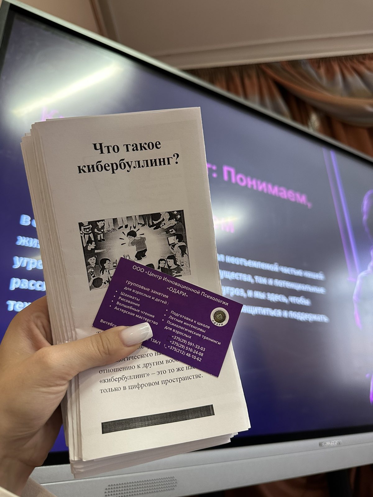 Директор Центра инновационной психологии «Одари» Саприкова Юлия Владимировна выступила с темой «Профилактика кибербуллинга в отношении несовершеннолетних. Профилактика кризисных состояний детей»