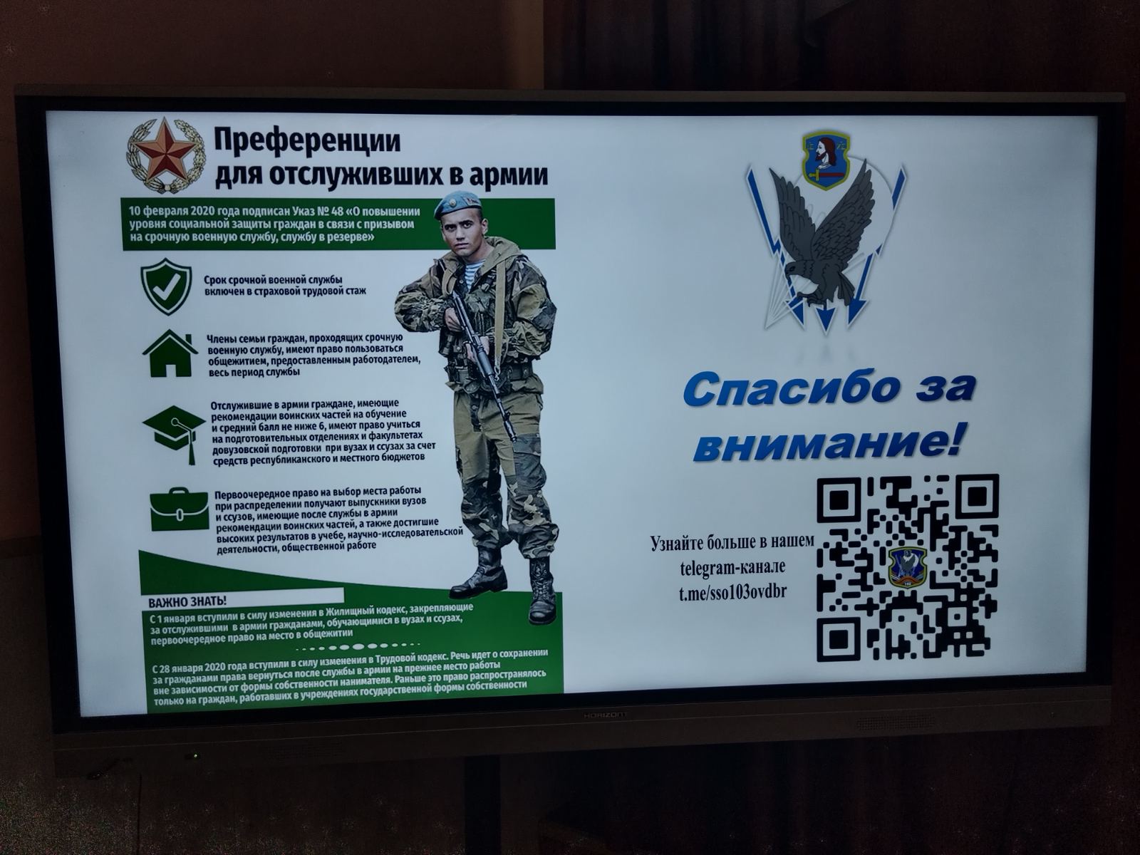 В ходе мероприятия ребята узнали о порядке поступления в «Военную академию Республики Беларусь», особенностях прохождения срочной службы и службы по контракту, в том числе в самой бригаде, мерах социальной защиты служащих.