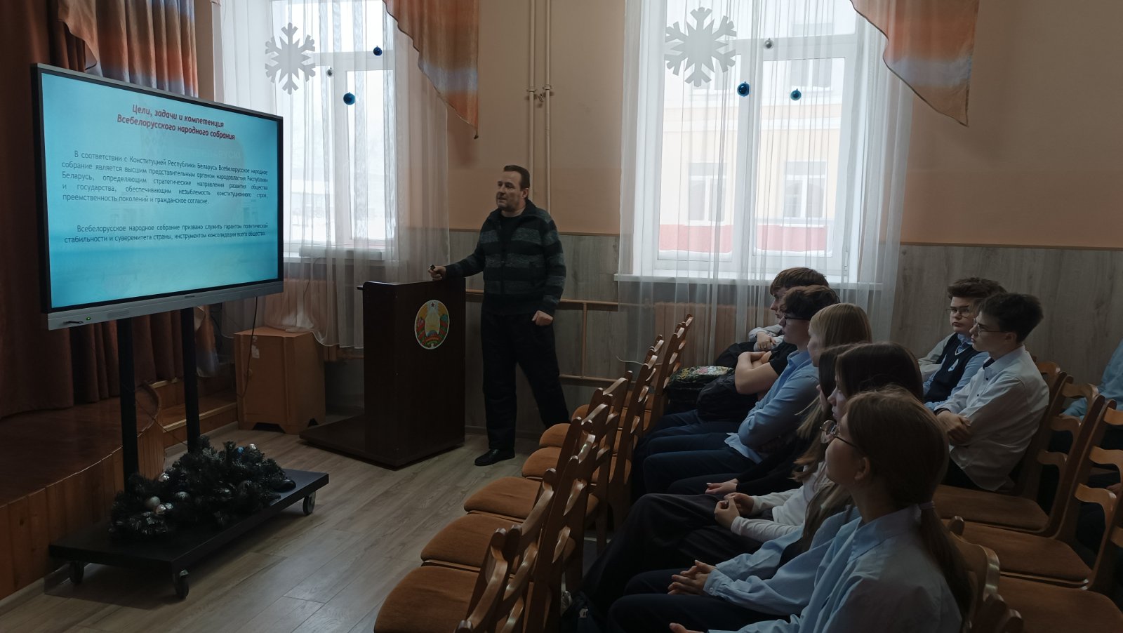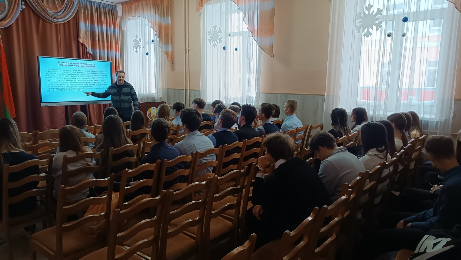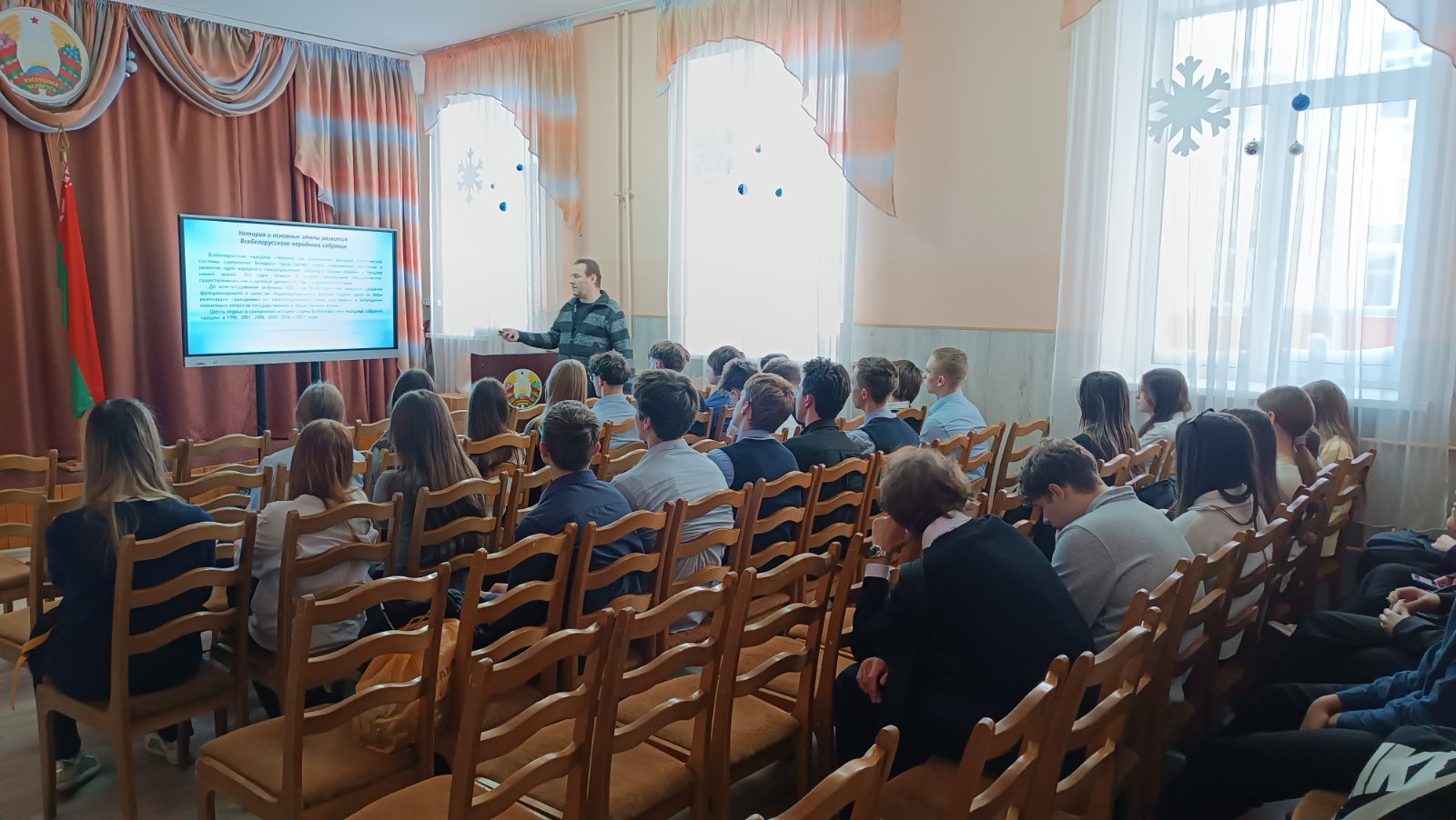 09 января 2026 года в ГУО «Средняя школа 3 г.Витебска имени Л.Н.Белицкого» с учащимися 10-11 классов было проведено мероприятие, в ходе которого ребята вспомнили историю и основные этапы развития Всебелорусскго народного собрания, его задачи и компетенцию