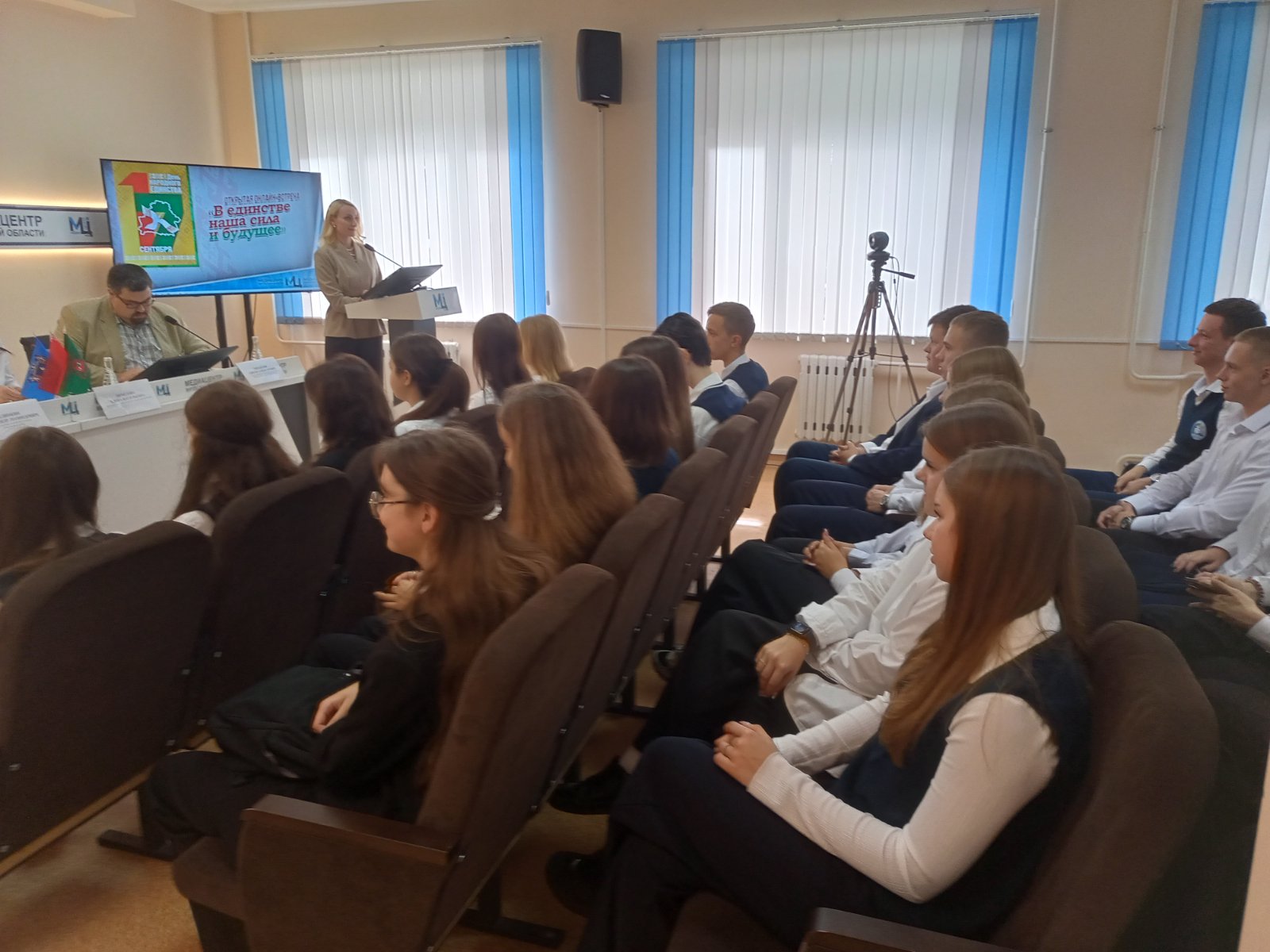 12 сентября учащиеся 11 класса приняли участие в открытой онлайн — встрече » В единстве наша сила и будущее!», которая прошла в Медиацентре.