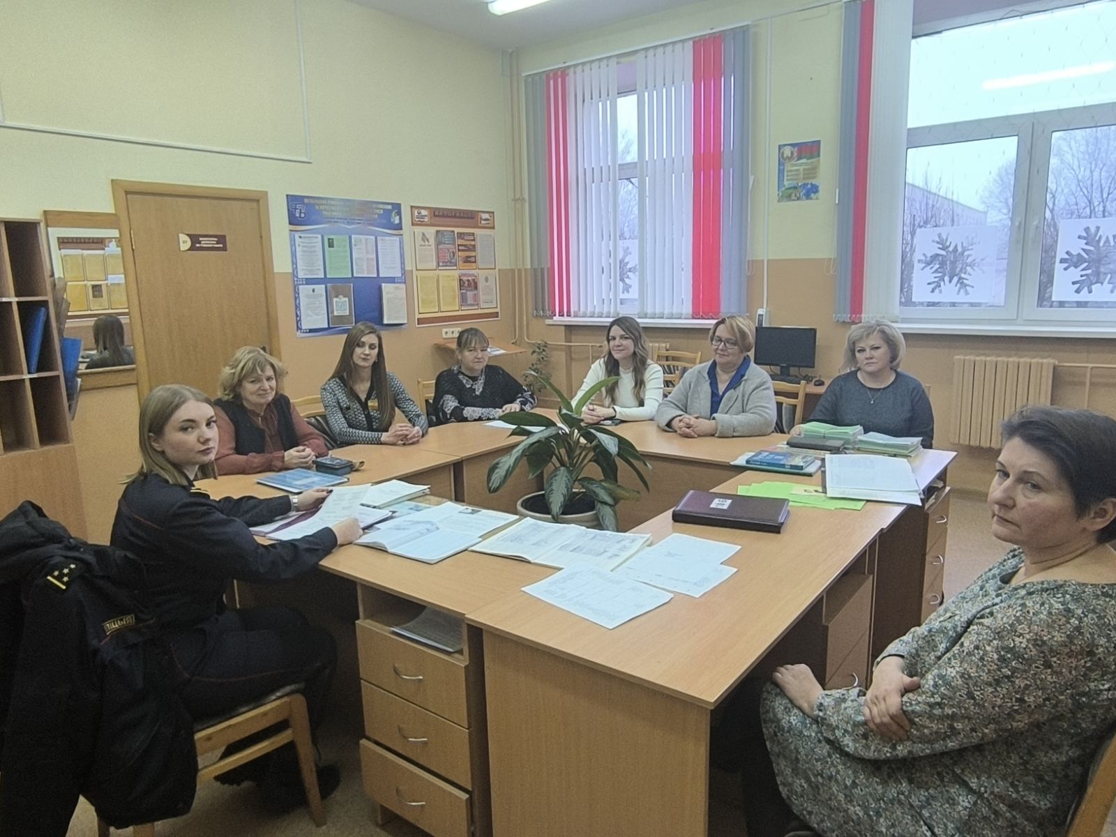 19 декабря старшим инспектором ИДН Октябрьского района г. Витебска Маркевич Ю.Г. был проведен инструктаж с руководством и педагогами школы по разъяснению алгоритма действий в случае возникновения ЧС, профилактике кибербезопасности и иных.