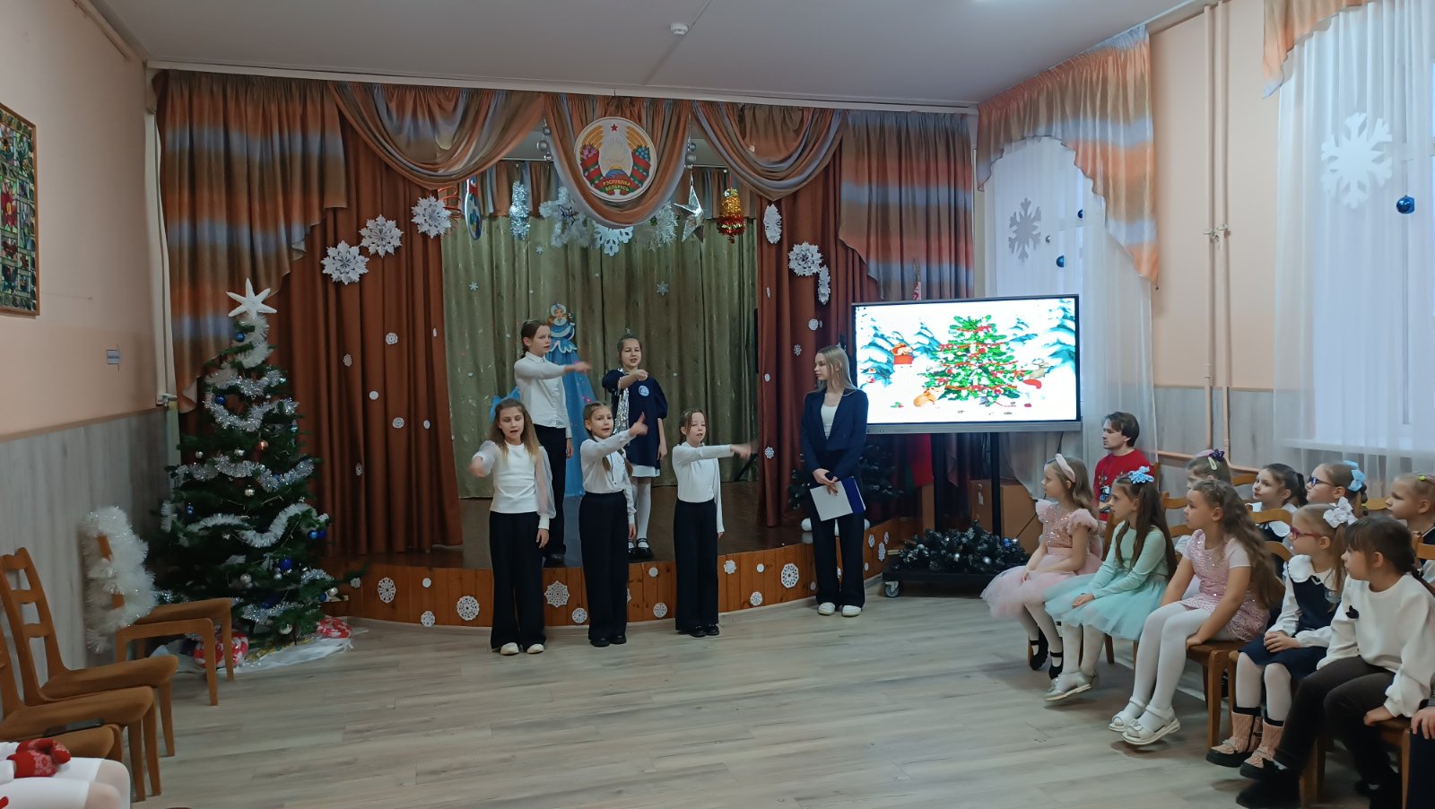 19 декабря в школе состоялись первые новогодние утренники для учащихся 1-2 классов. Праздничное представление «В гостях у сказки» подготовили талантливые и творческие учащиеся 5-10 классов