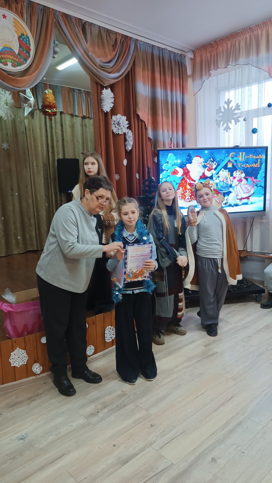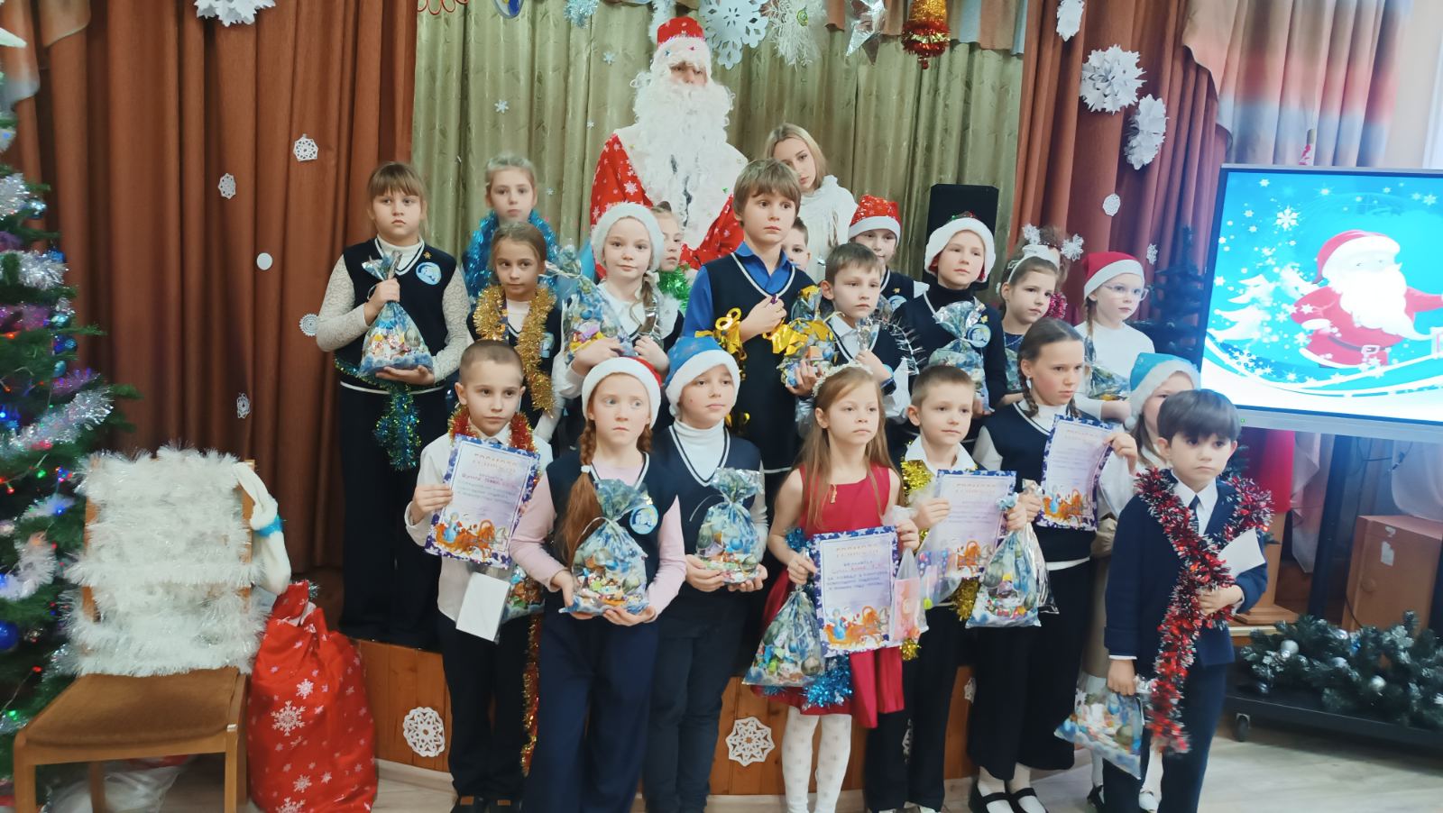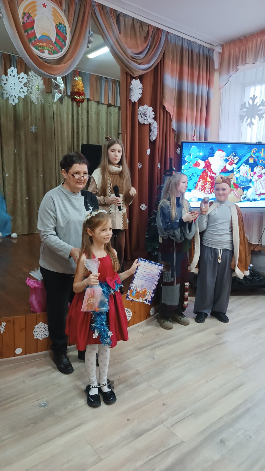 19.12.202519 декабря в школе состоялись первые новогодние утренники для учащихся 1-2 классов. Праздничное представление » В гостях у сказки» подготовили талантливые и творческие учащиеся 5-10 классов. Известные всем сказочные героини пробовали себя в роли Снегурочки, пели, танцевали, играли с ребятами в веселые игры, искали вместе с Дедом Морозом волшебное лекарство для настоящей Снегурочки. И конечно же, какой праздник без нарядной, светящейся разноцветными огоньками ёлки и подарков!!! В рамках мероприятия дипломами и благодарностями за участие в школьных творческих конкурсах были отмечены самые активные учащиеся.