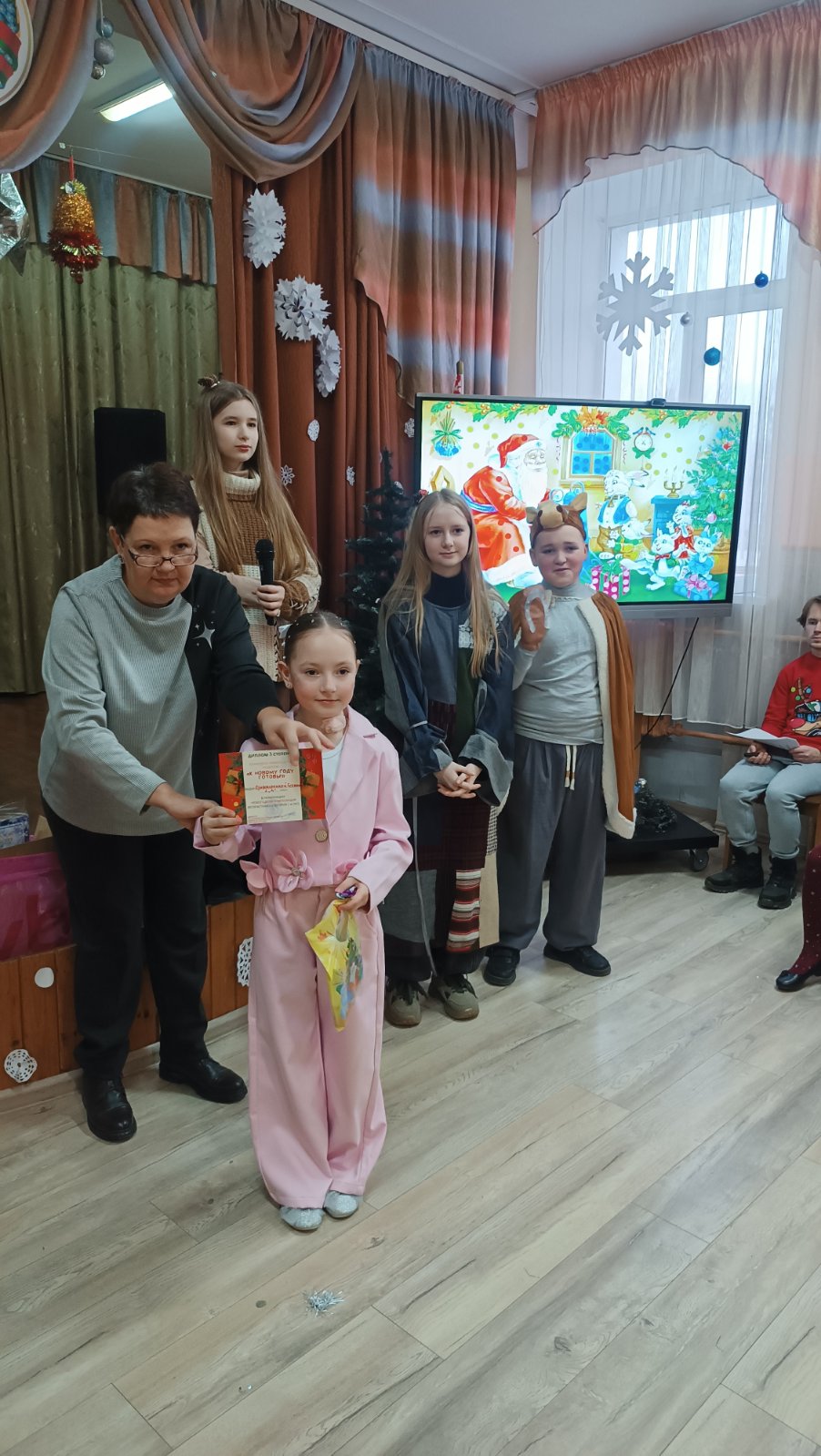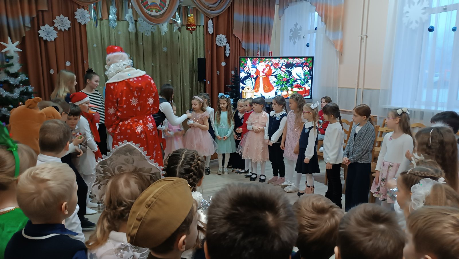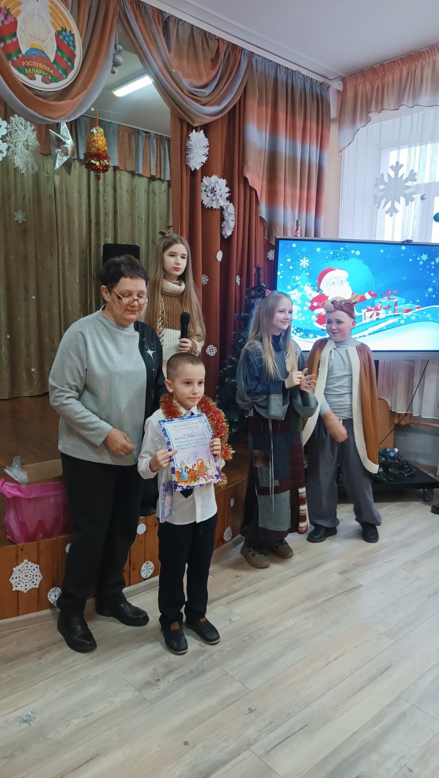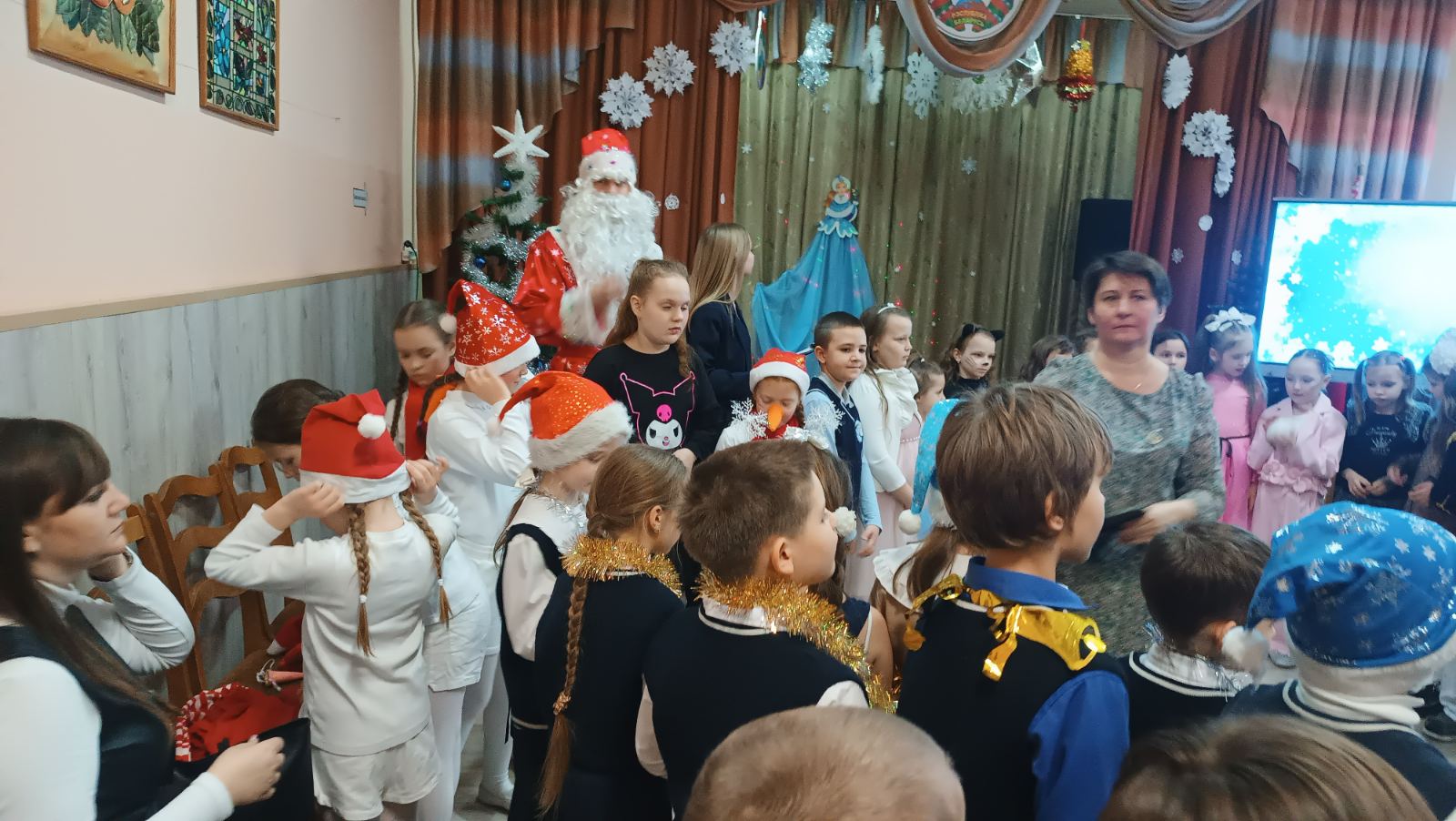 19.12.202519 декабря в школе состоялись первые новогодние утренники для учащихся 1-2 классов. Праздничное представление » В гостях у сказки» подготовили талантливые и творческие учащиеся 5-10 классов. Известные всем сказочные героини пробовали себя в роли Снегурочки, пели, танцевали, играли с ребятами в веселые игры, искали вместе с Дедом Морозом волшебное лекарство для настоящей Снегурочки. И конечно же, какой праздник без нарядной, светящейся разноцветными огоньками ёлки и подарков!!! В рамках мероприятия дипломами и благодарностями за участие в школьных творческих конкурсах были отмечены самые активные учащиеся.