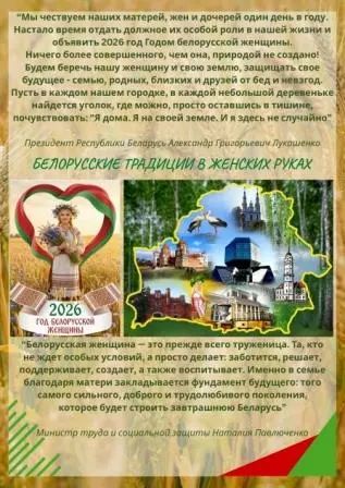 Президент Беларуси Александр Лукашенко подписал Указ № 1, которым 2026 год объявлен Годом белорусской женщины.
