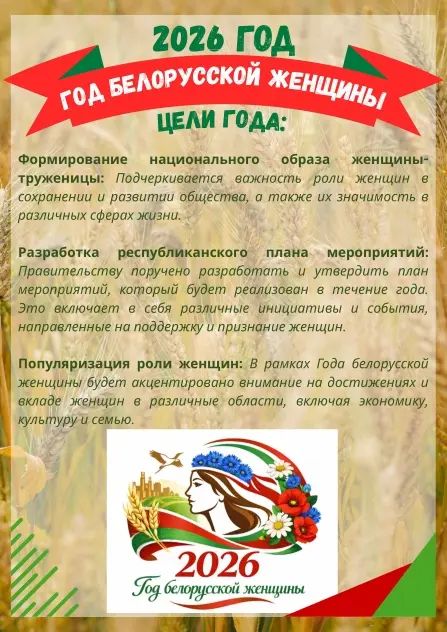 Правительству с участием облисполкомов, Минского горисполкома поручено разработать и утвердить республиканский план мероприятий по проведению в 2026 году Года белорусской женщины. Также Правительство будет координировать деятельность государственных органов, других организаций по выполнению этого плана.