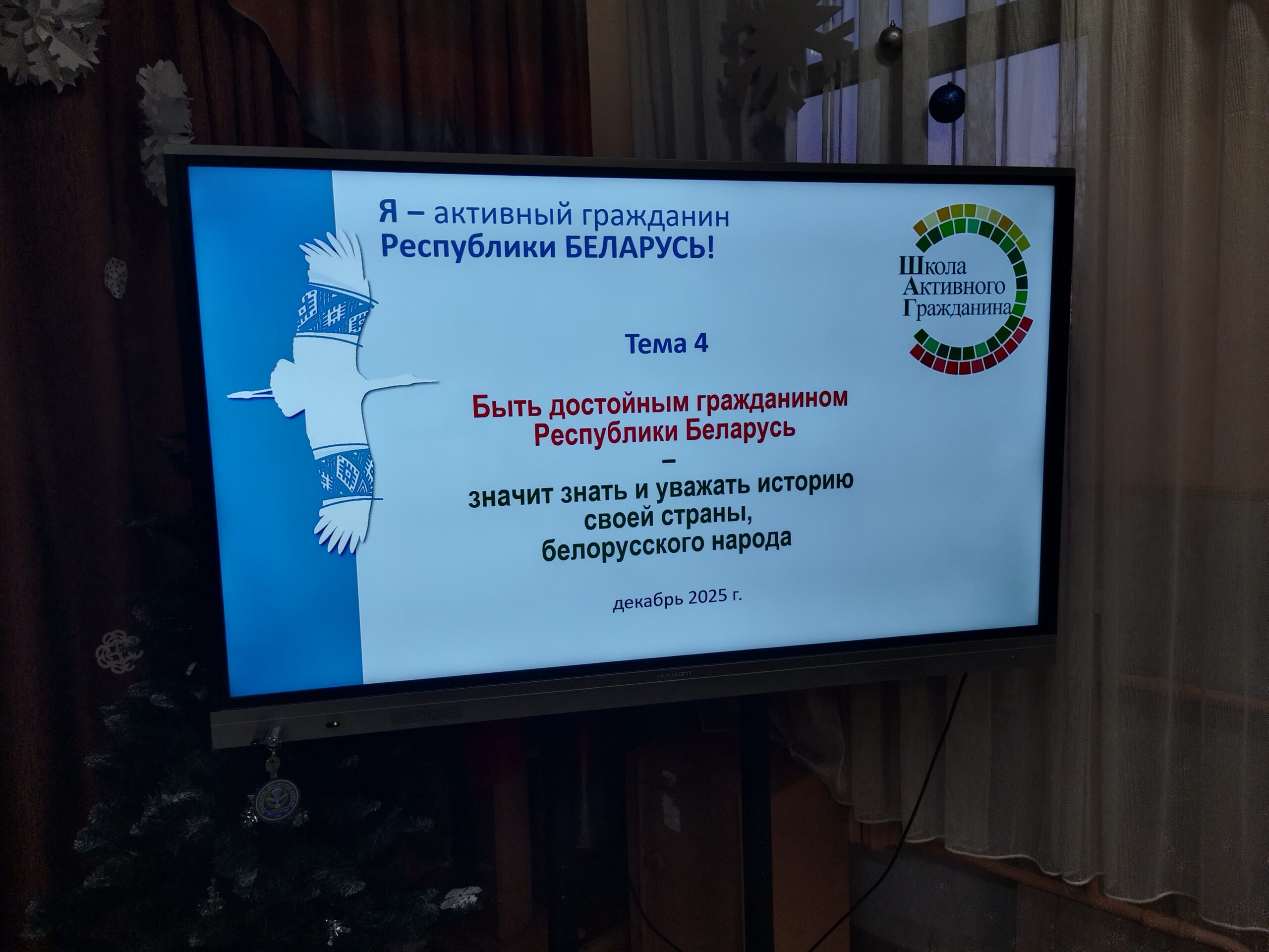 24 декабря 2025 года в ГУО «Средняя школа №3 г.Витебска имени Л.Н.Белицкого» прошло мероприятие в рамках информационно-образовательного проекта «ШАГ» — «Школа Активного Гражданина» по теме «Быть достойным гражданином Республики Беларусь — значит знать и уважать историю своей страны, белорусского народа»