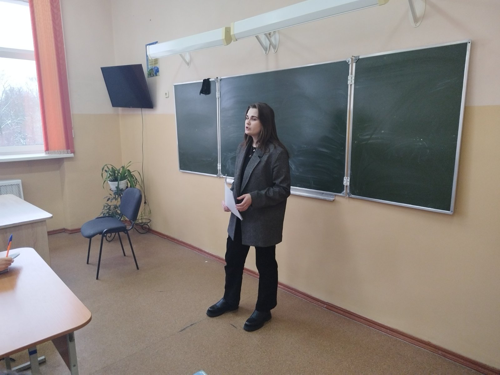 25 ноября 2025 в ГУО «Средняя школа №3 г.Витебска имени Л.Н.Белицкого» состоялась встреча с общественным помощником прокуратуры г.Витебска Плисовой Ксенией Алексеевной.
