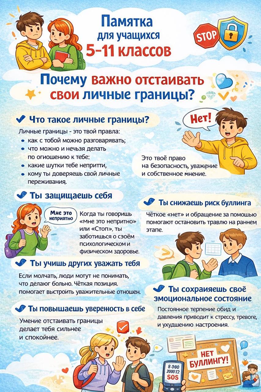 Памятка для учащихся 5-11 классов «Почему важно отстаивать свои личные границы?»