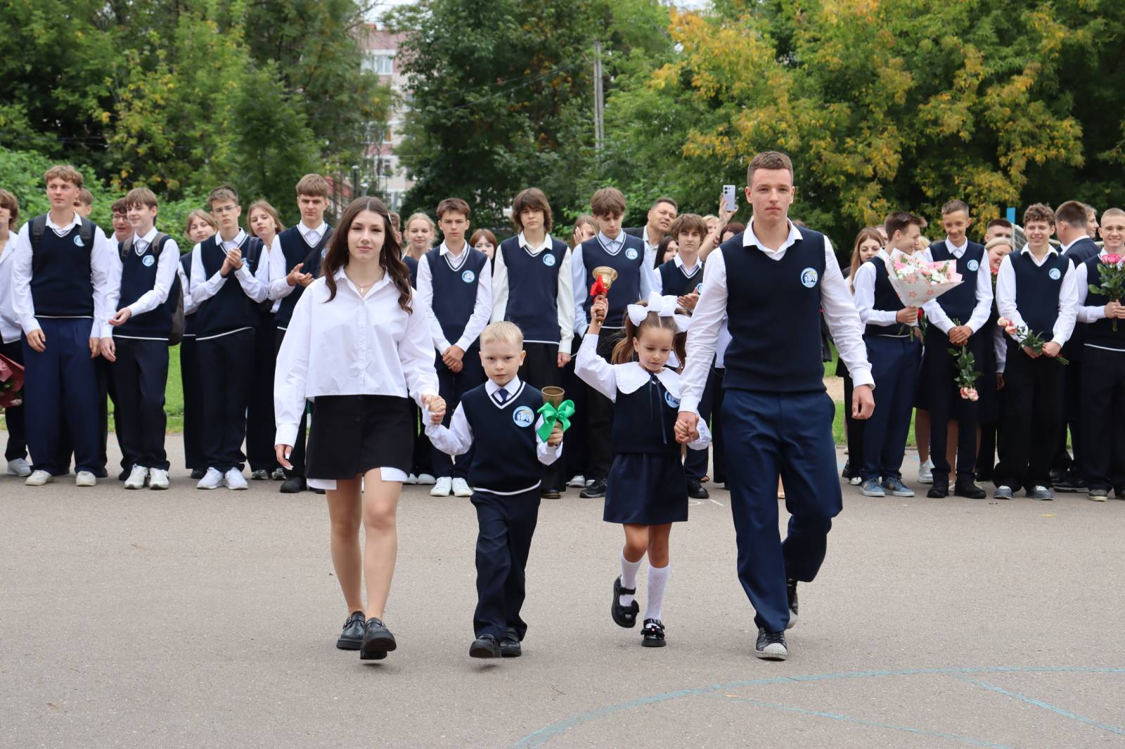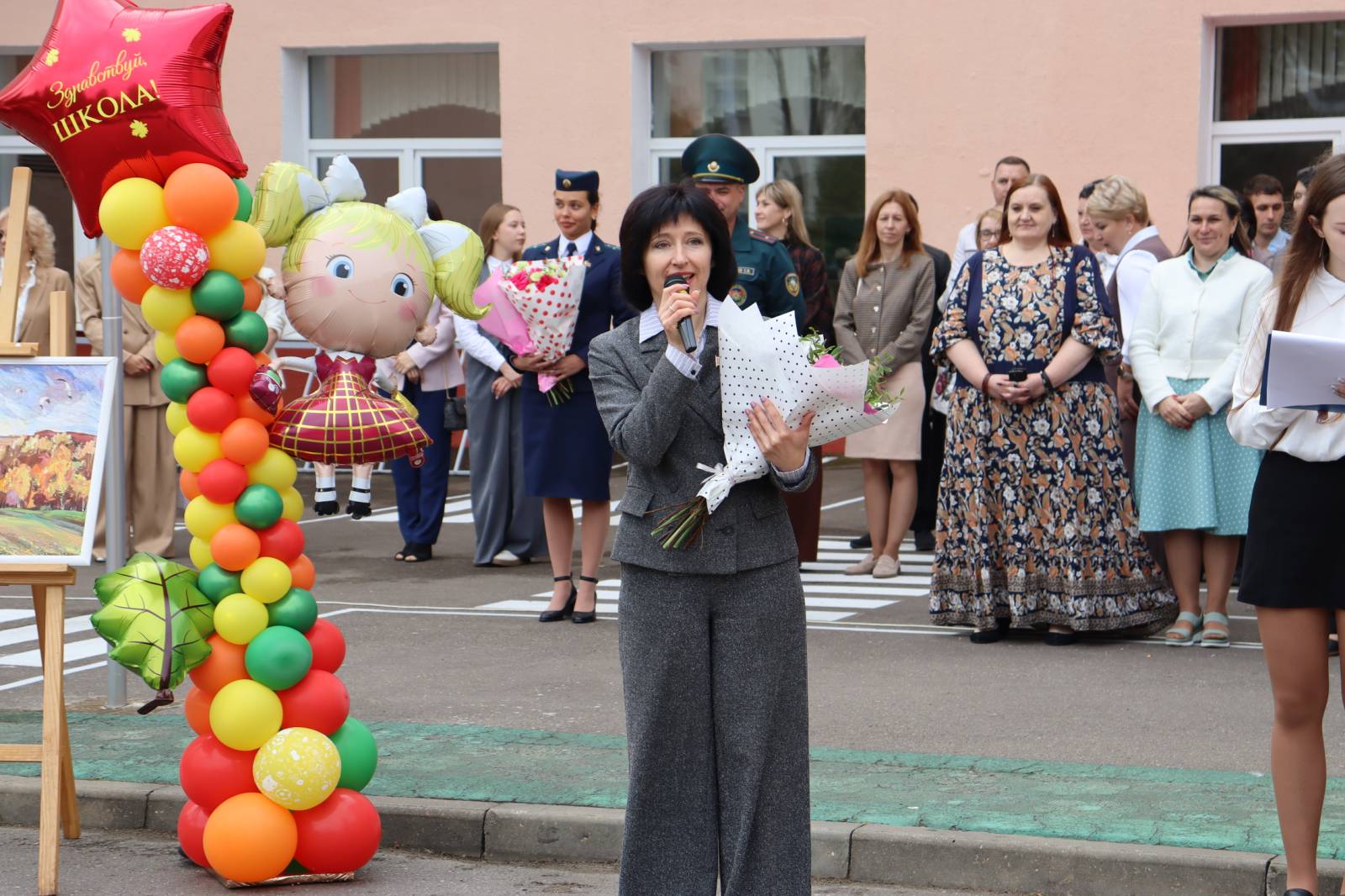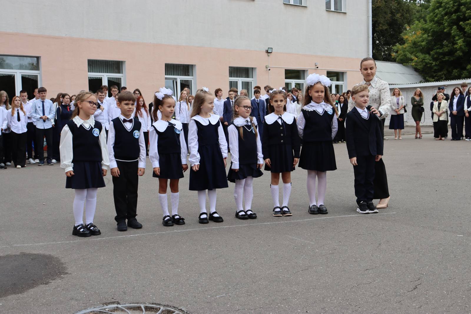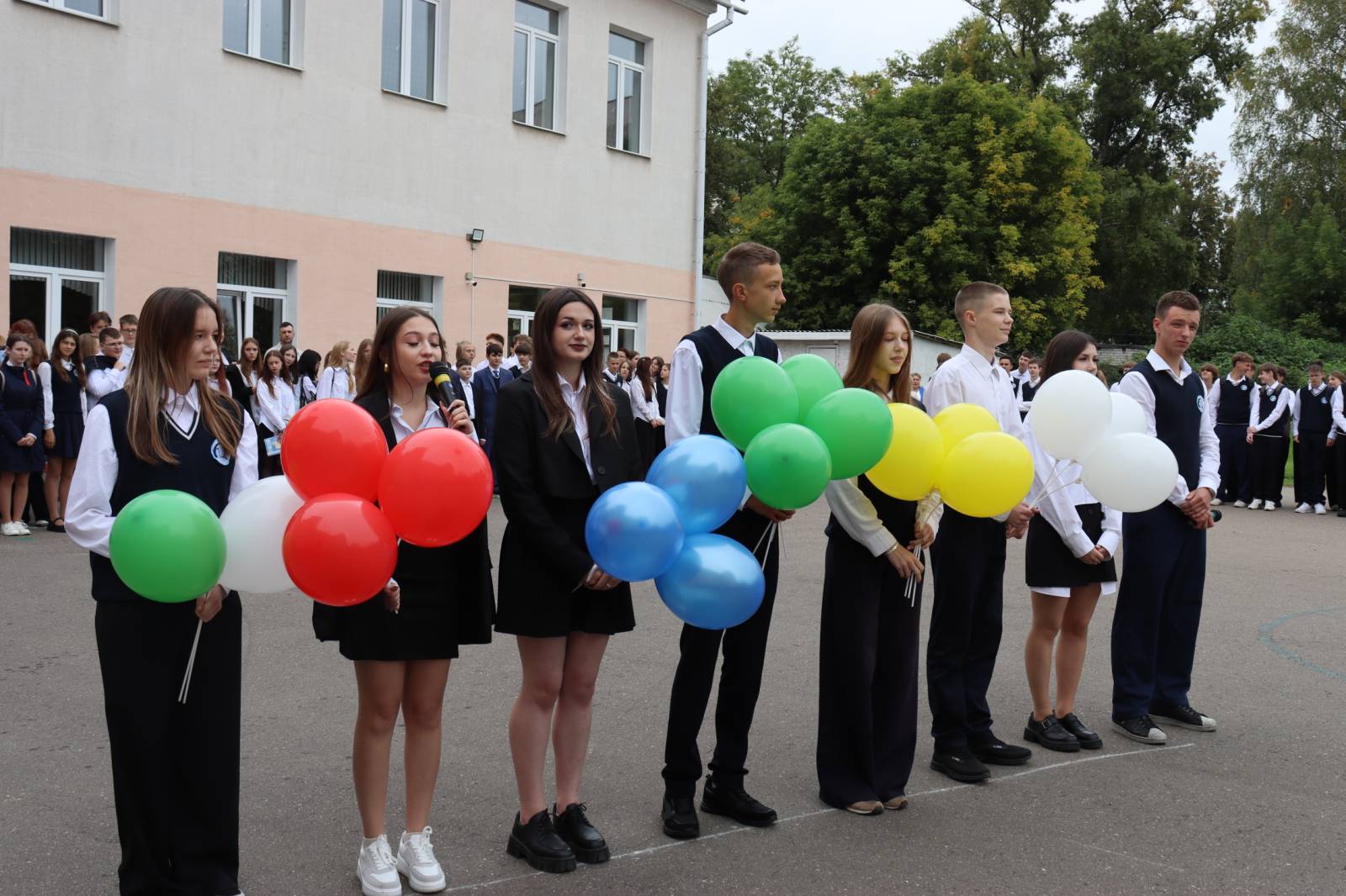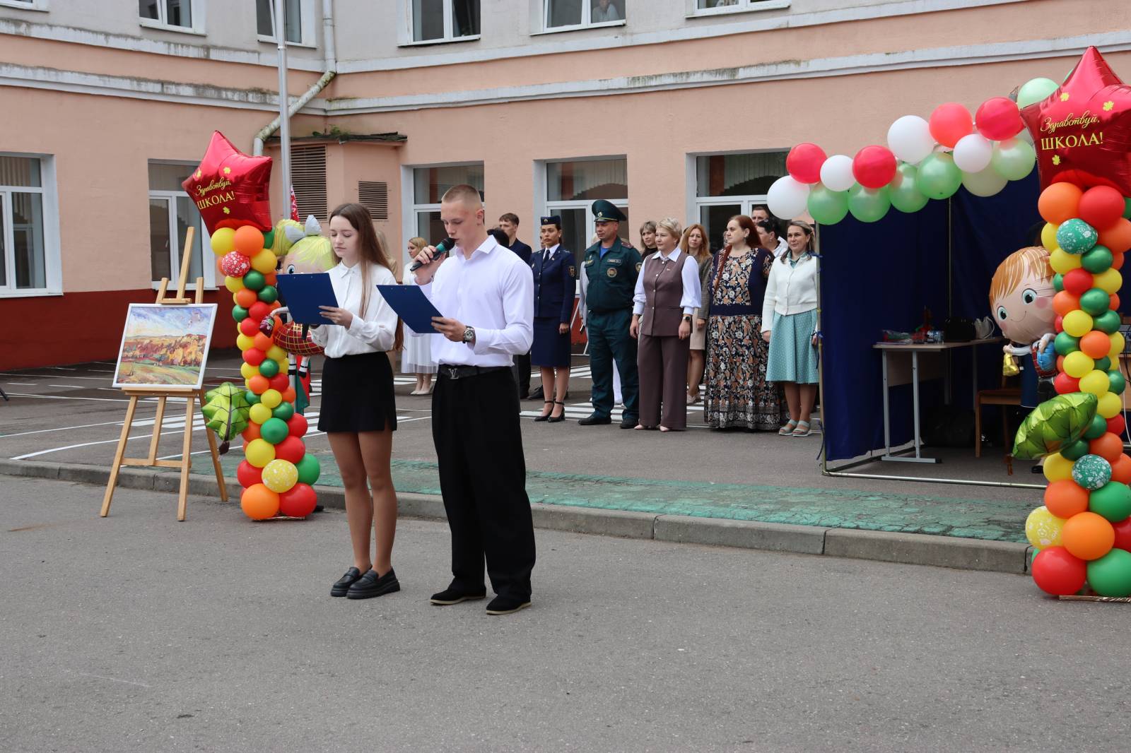 Учащихся, их родителей и педагогов с началом нового учебного года пришли поздравить депутат Витебского областного Совета депутатов Татьяна Адамовна Савицкая, помощник прокурора Агата Андреевна Карпова, главный специалист отдела по образованию администрации Октябрьского района г. Витебска Ирина Петровна Галян, старший инспектор инспекции по делам несовершеннолетних Октябрьского района г. Витебска Юлия Геннадьевна Маркевич и начальник аварийно-спасательной части 5 Витебского городского отдела по чрезвычайным ситуациям майор внутренней службы Зайцев Сергей Владимирович. После линейки, по сложившейся традиции, учащиеся 11 класса проводили первоклассников в классы на первый урок — урок Знаний!