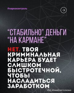 Закладки — это не квест! Это реальные тюремные сроки! Количество наркопреступлений среди несовершеннолетних выросло практически в 3 раза. За 11 месяцев этого года их зарегистрировано 111. При этом 92 связаны со сбытом наркотических средств. По статистике, каждый второй задержанный – учащийся колледжа или лицея. Большинство молодых людей признаются, что в учебных заведениях не раз проводились профилактические беседы. Но, несмотря на информированность об ответственности, все равно поддавались соблазну легких денег. Наркобизнес и закладка наркотиков — это не квест и забавная игра, где можно заработать. Это реальные тюремные сроки!