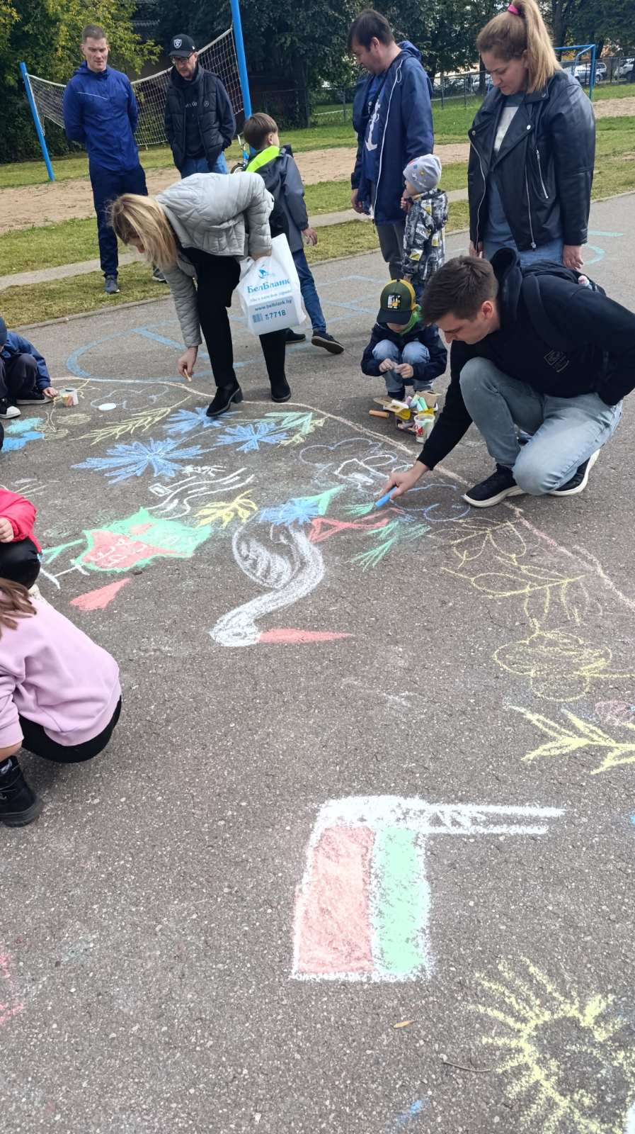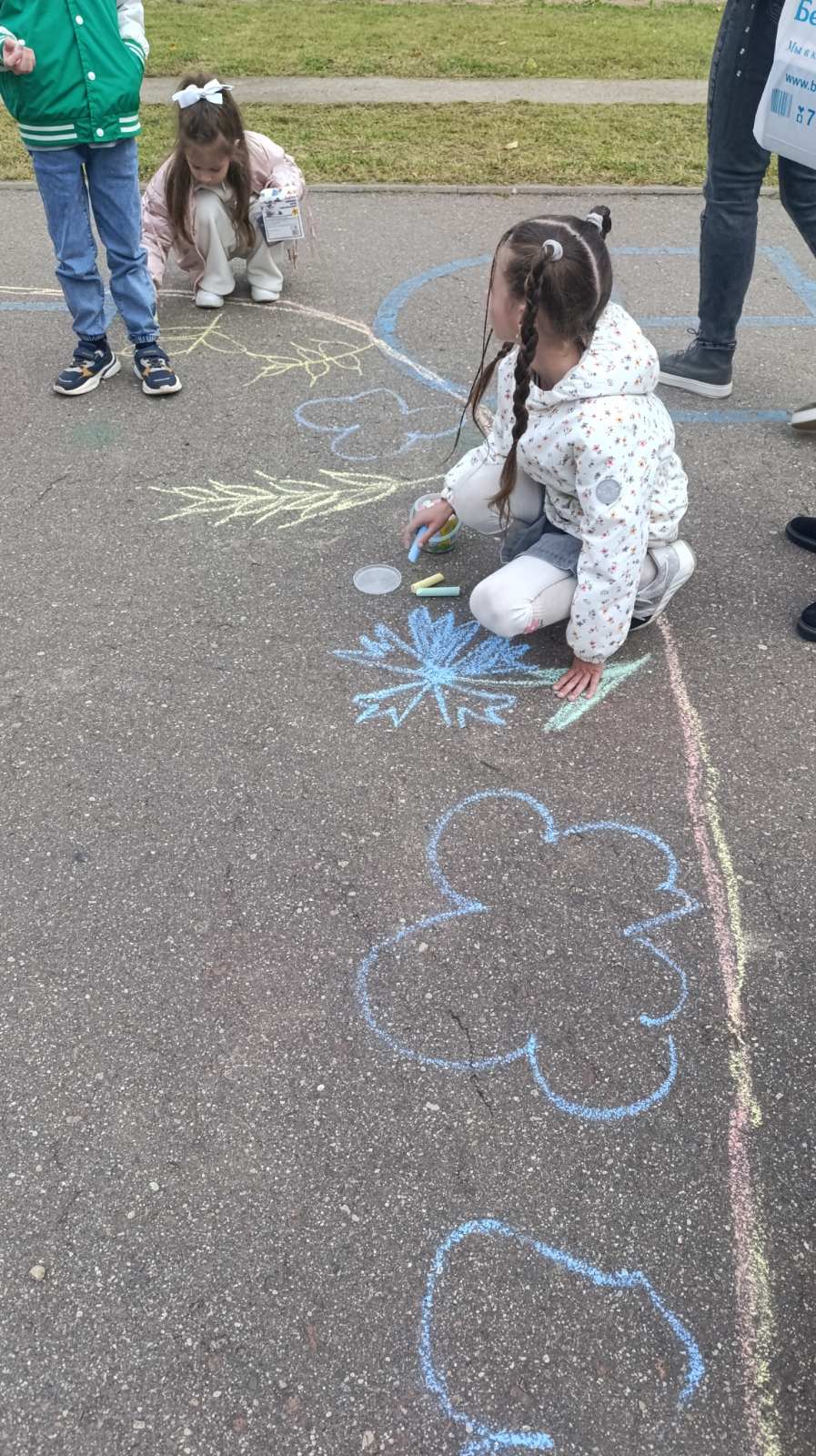 В шестой школьный день 20 сентября во дворе школы прошел конкурс рисунков на асфальте посвященному Дню Народного Единства. Дети 1-2 классов и родители с удовольствием приняли участие в рисовании.