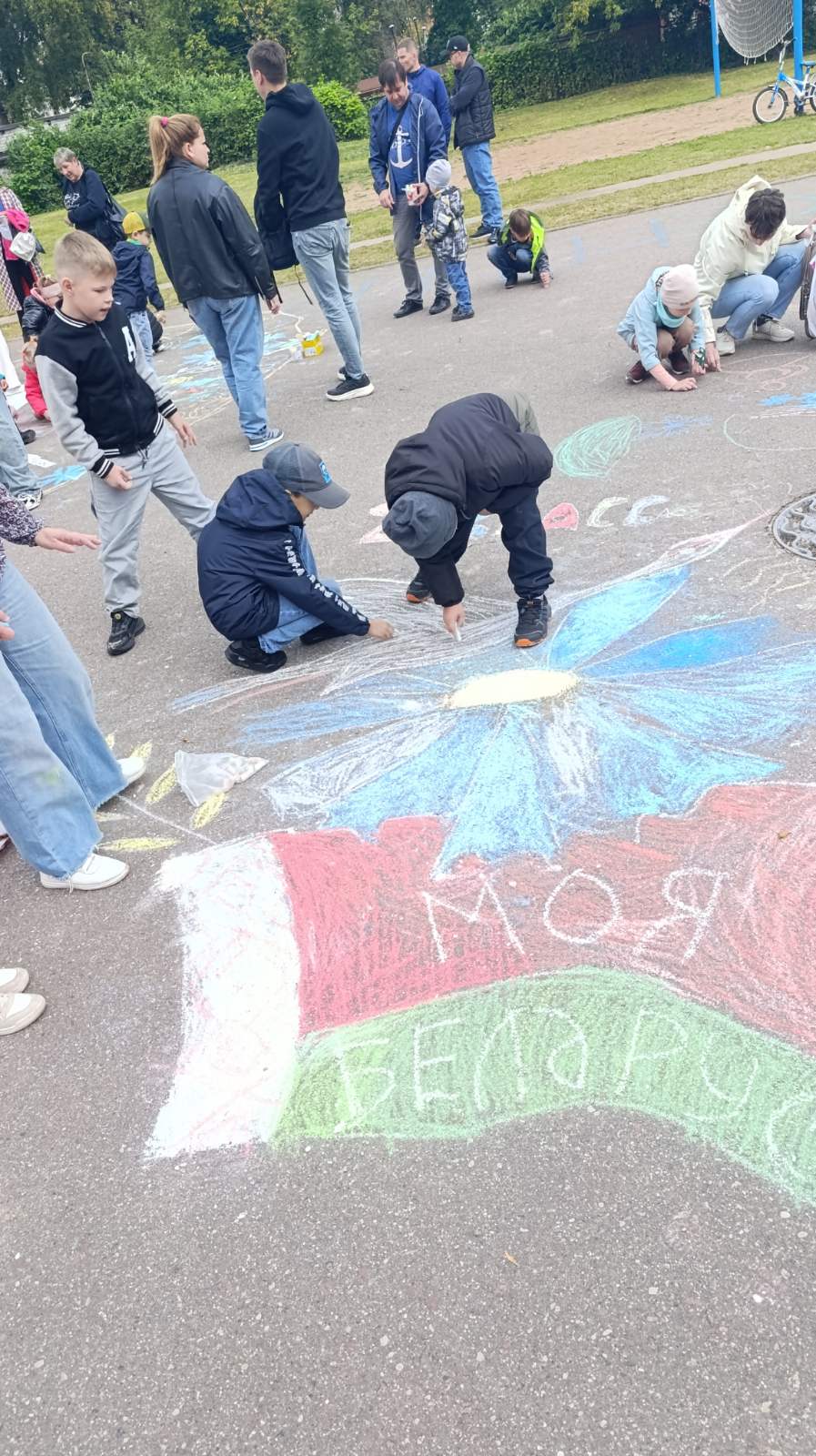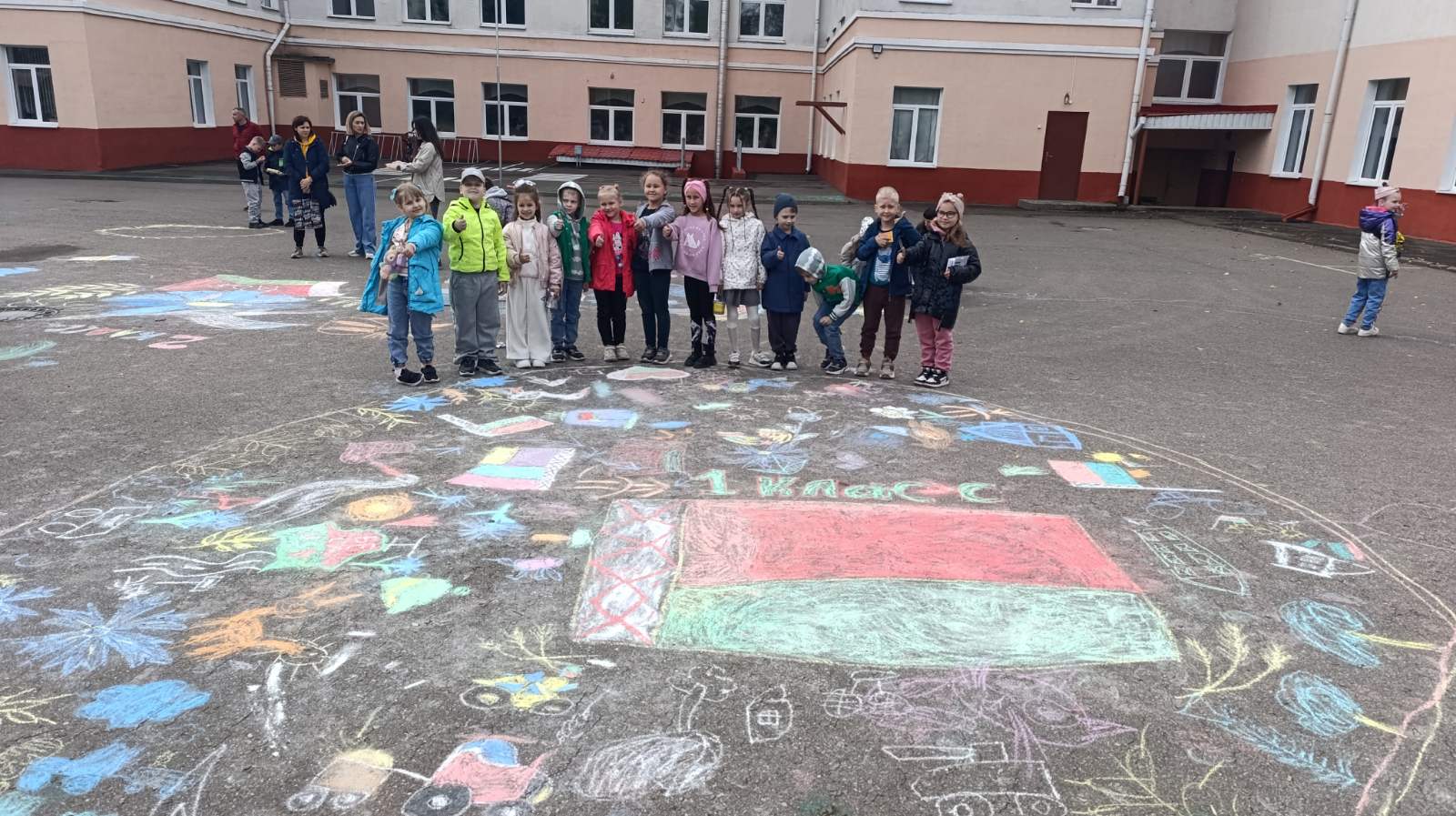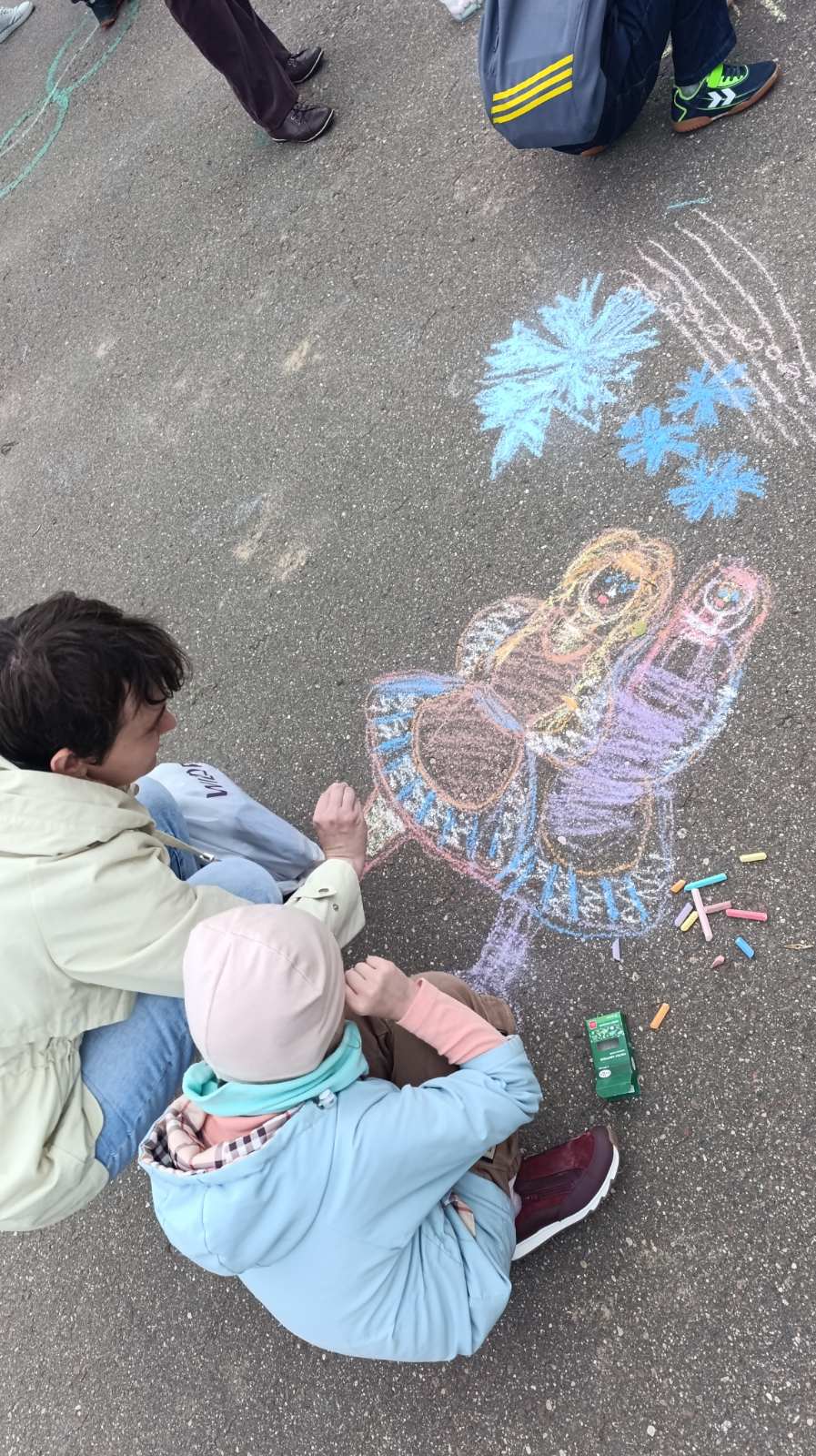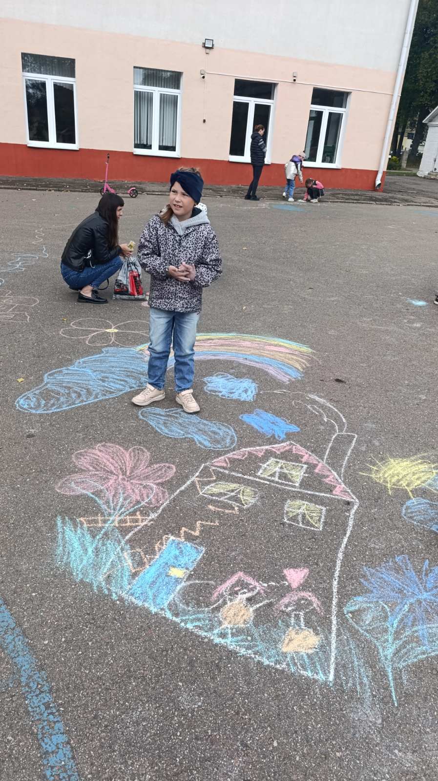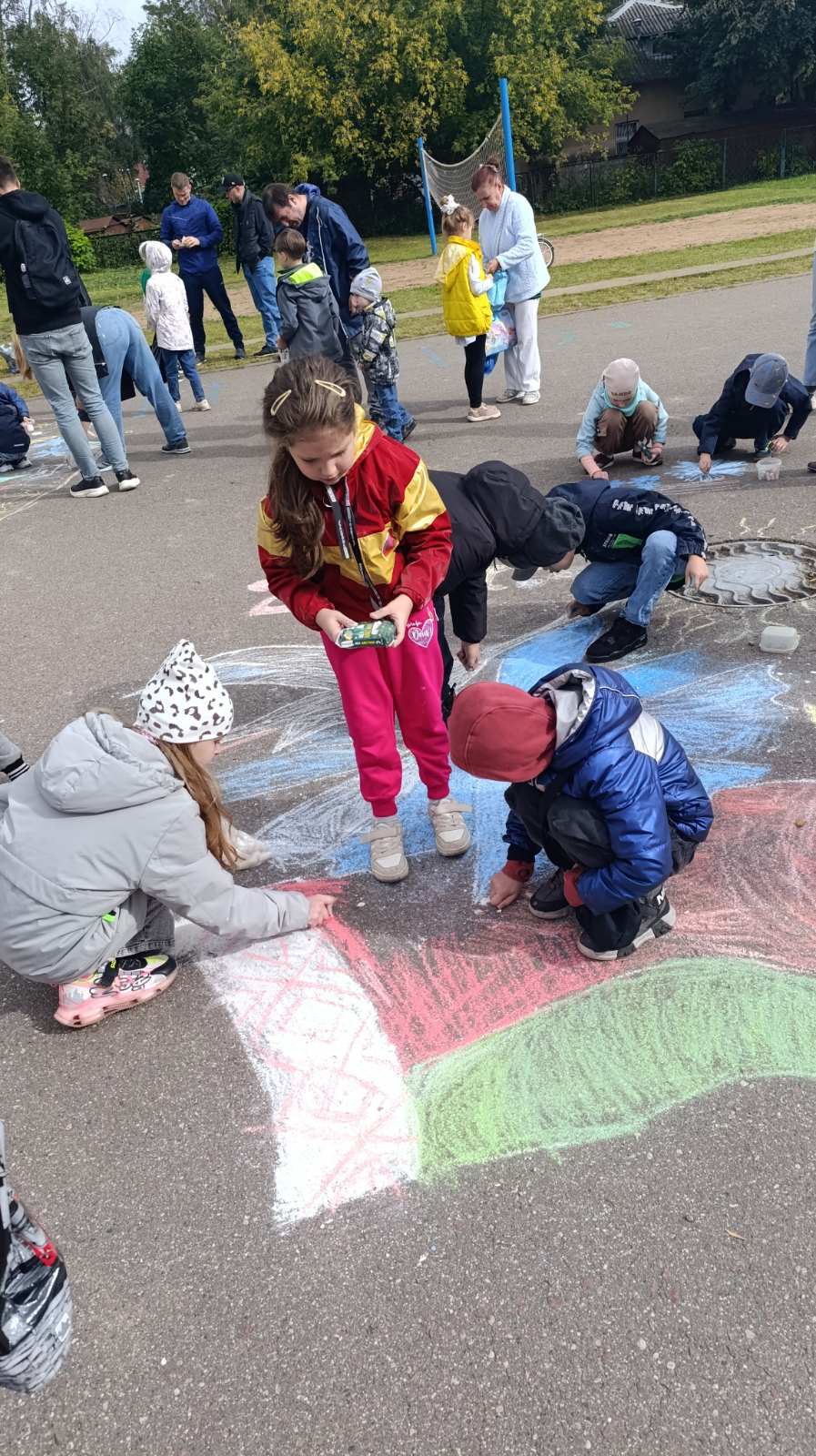 В шестой школьный день во дворе школы прошел конкурс рисунков на асфальте посвященному Дню Народного Единства